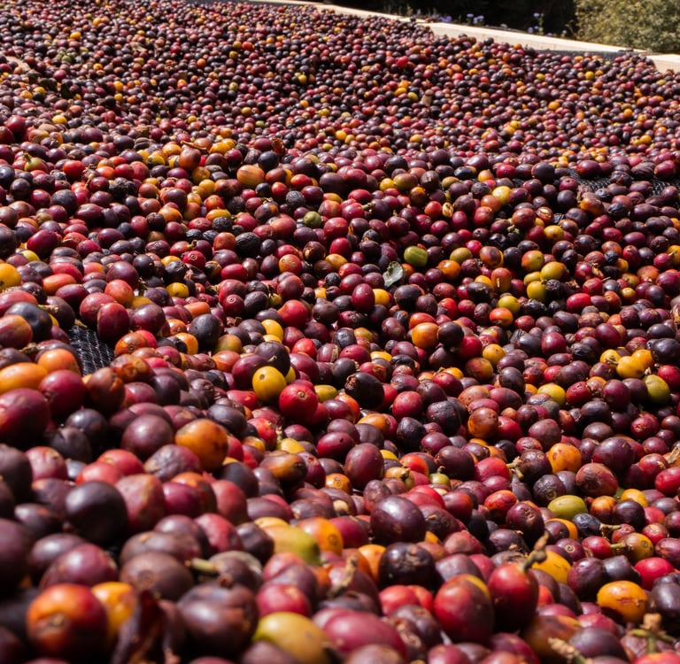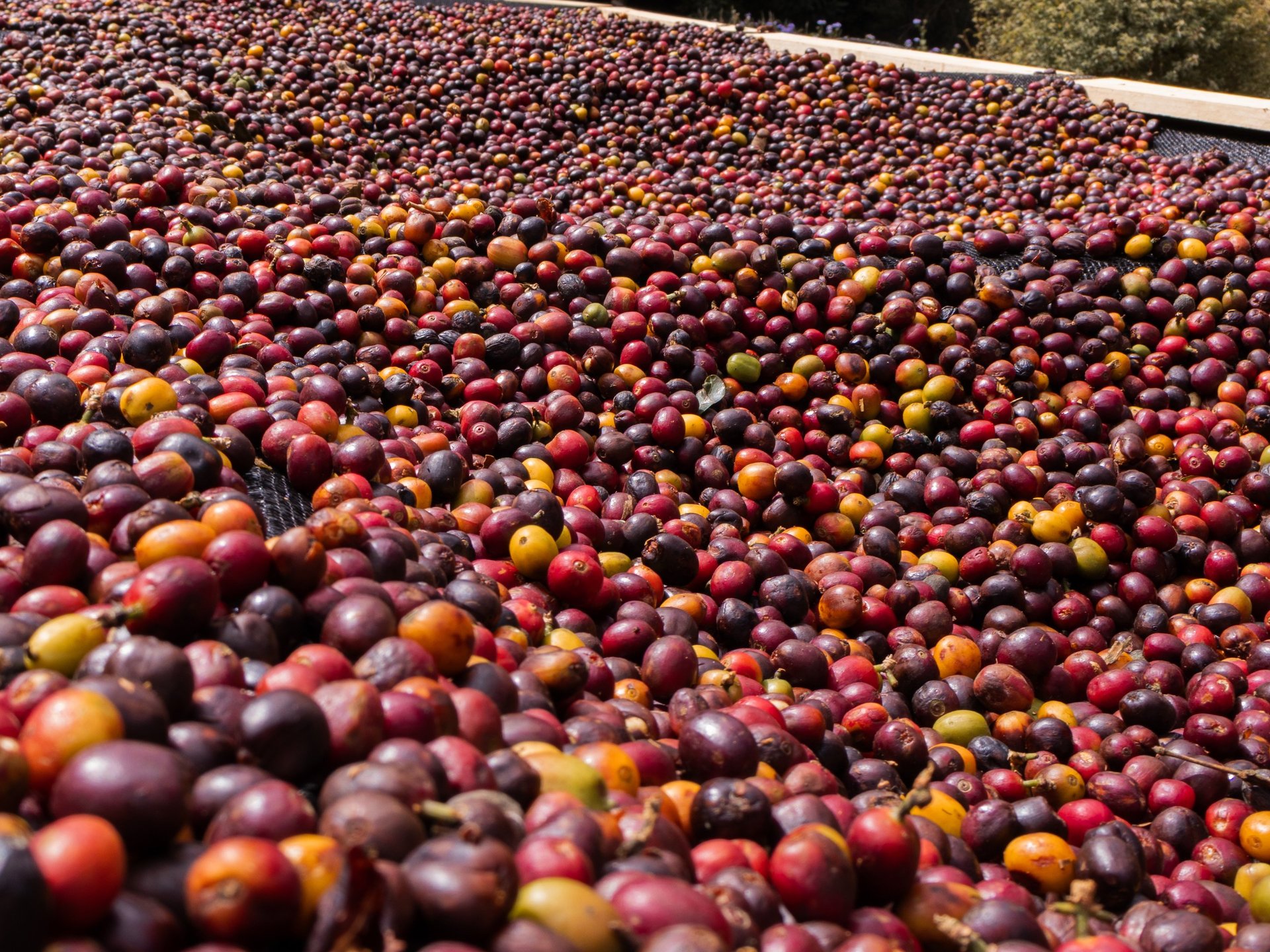 El café de proceso natural es un método tradicional de procesar los granos de café que no implica el uso de maquinaria ni agua (forma de bajo consumo de secar el café). Después de recoger las cerezas de café, se colocan en agua para flotar. Cada cereza se inspecciona cuidadosamente para eliminar los frutos poco maduros y demasiado maduros. El café se coloca luego en camas elevadas, conocidas como camas africanas, para permitir que el aire fluya alrededor de toda la fruta y ayudar a ofrecer un proceso de secado más uniforme. Este proceso de secado puede durar entre 3 y 6 semanas. Durante este tiempo, el café se gira o rastrilla varias veces al día. Una vez que las frutas están completamente secas, se envían para el descascarillado. Aquí es donde se extrae la semilla de la fruta. Después del descascarillado, el último paso del proceso es el descascarado en seco o la eliminación de la piel de la semilla.